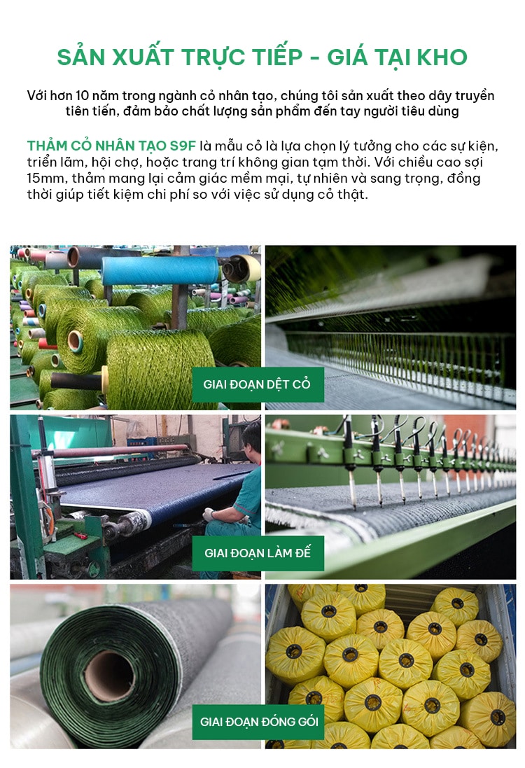 Thảm Cỏ Nhân Tạo S9F – Trải Sự Kiện – Triển Lãm – Hội Chợ – Trang Trí Không Gian Tạm Thời – Ko Cắt Lẻ